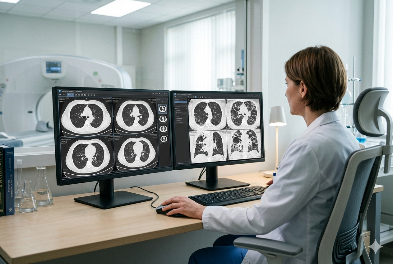 대부분의 이전 연구가 염증 수치나 폐 용량과 같은 개별 임상 매개변수에 집중했던 반면, 영상 기술은 지금까지 예외였습니다. 장기간 사용자의 흉부 촬영 분석을 통해 이제 이 지식 공백을 메울 수 있게 되었습니다.